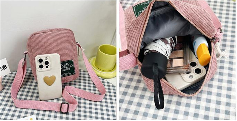 Mini Cross Body Bags Women Letter Label Wild Corduroy Small Messenger Bag For Women Girls Satchel Purse Phone Bags