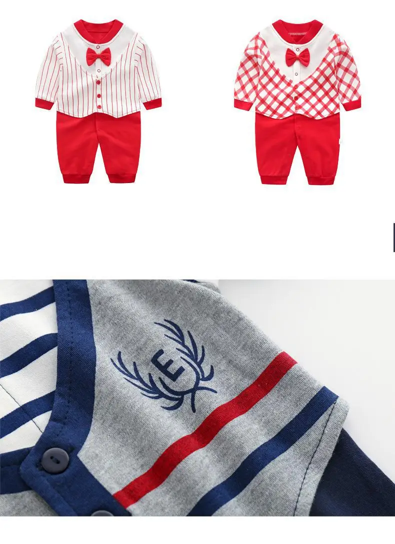 Baby Jumpsuit spring Clothing Newborn Cotton Clothes Infant Long Sleeved Rompers Baby Boys Bow Tie Climbing Roupa Pajama Outwear
