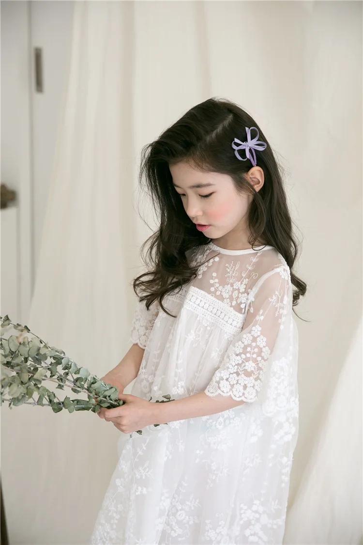 Big Girls Dress Summer Princess Party Frocks Lace Embroidery White Dress for Teens Girl 4 6 8 10 11 12 14 Yrs Children Clothing