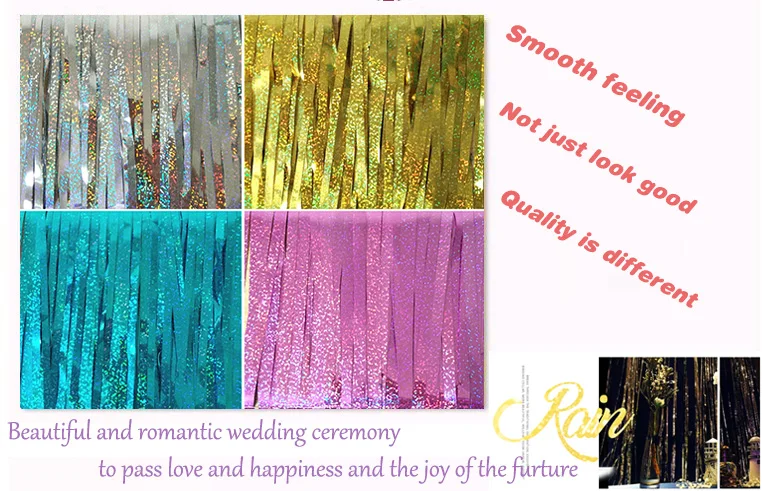Iridescent Glitter Upgrade Gold foil fringe curtain, shimmer and attractive,is a perfect decoration for wedding Adult Anniversary birthday  party, etc.