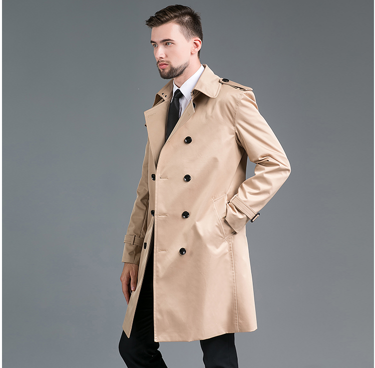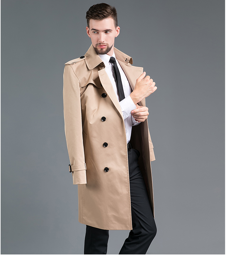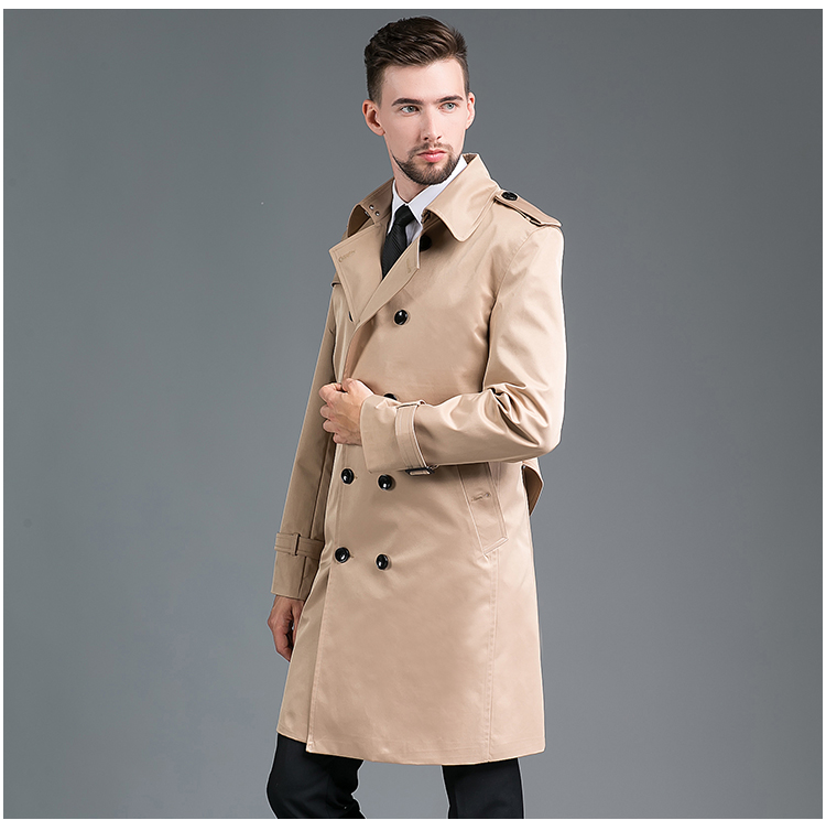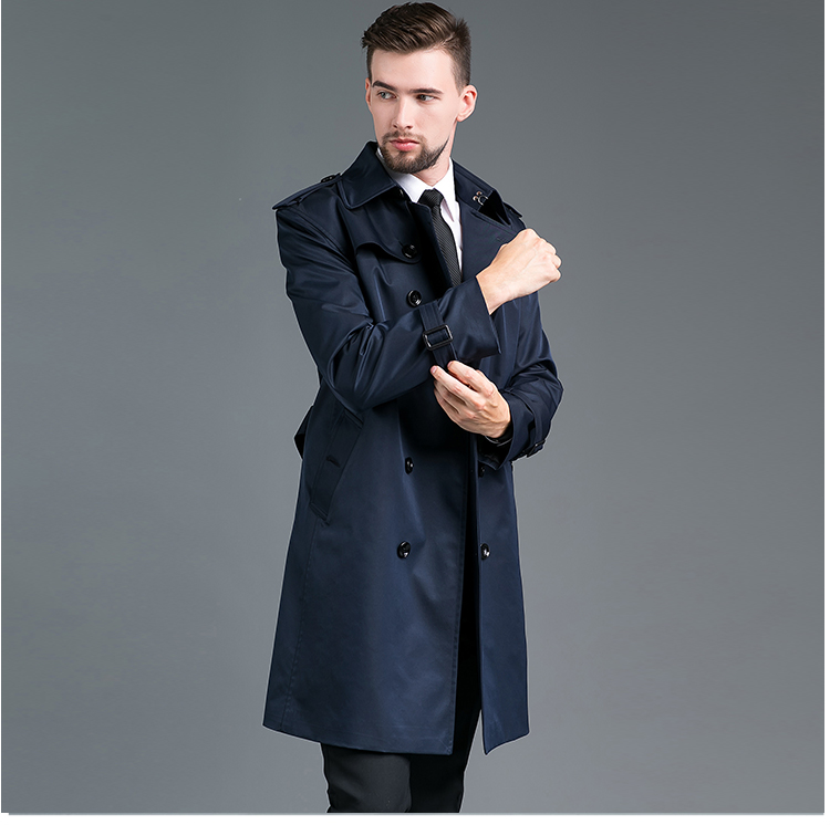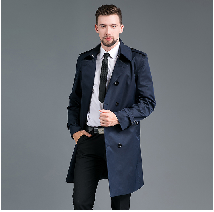 Blue Khaki Black Mens Trench Coats Veste Homme Man Medium Double Breasted Clothes Slim Fit Overcoat Long Sleeve New Designer