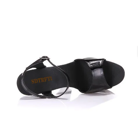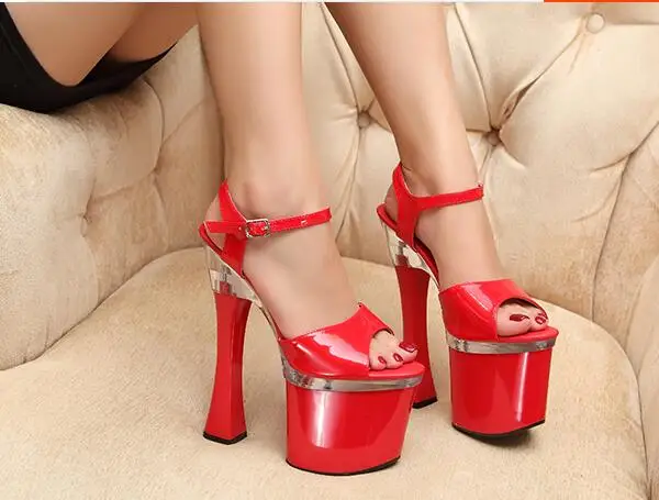 CDTS Plus:34-44 Summer Crossdresser sexy high-heeled ladies 20cm thick heel crystal platform Buckle sandals SM shoes woman pumps