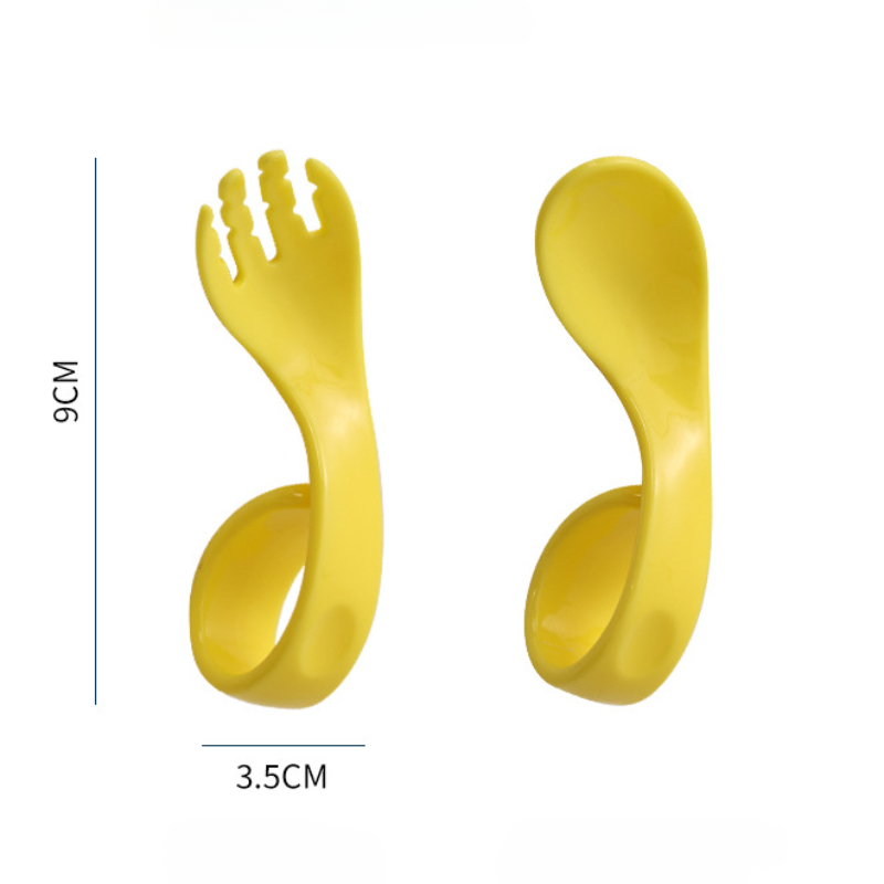 Children Learn To Eat Training Spoon Kids Feeding Utensil Toddler Cutlery Infant Food Ringed Curved Handle Baby Spoon and Fork