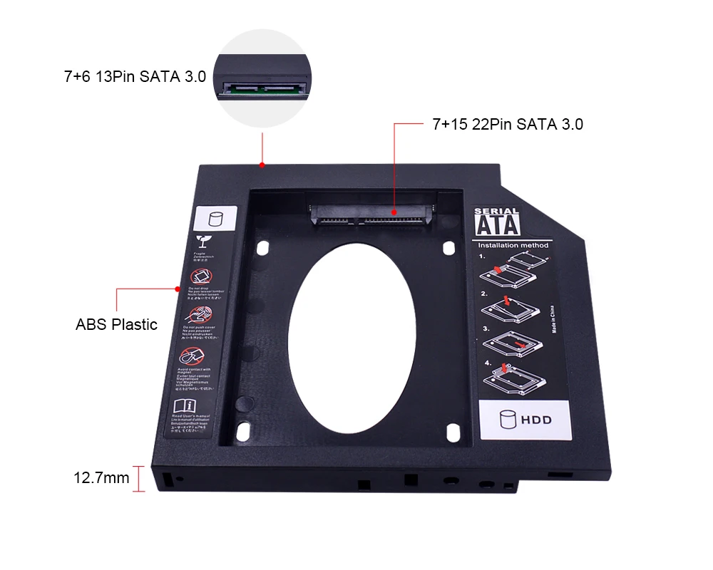 The Universal SATA-to-SATA Caddy is compatible with all the laptops that has a 12.7mm-thickness optical bay with a SATA interface.
