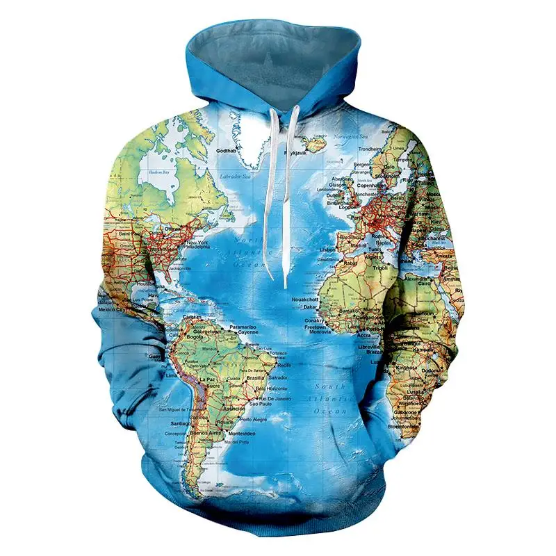 CJLM World Map 3D Funny Hoodies Sweatshit Retro Clothing Men Urban Casual Hipsters Long-sleeved Hip Hop Hoody Pullover Unisex