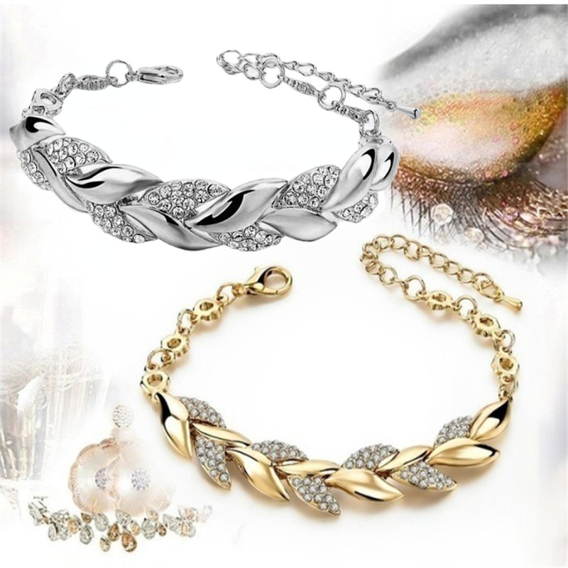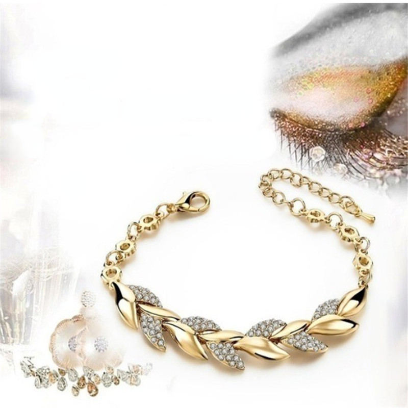 Fashion Gold-plated Leaf Zircon Leaf Bracelet Adjustable Bracelet Zircon Bracelets for Women Wedding Jewelry Anniversary Gift