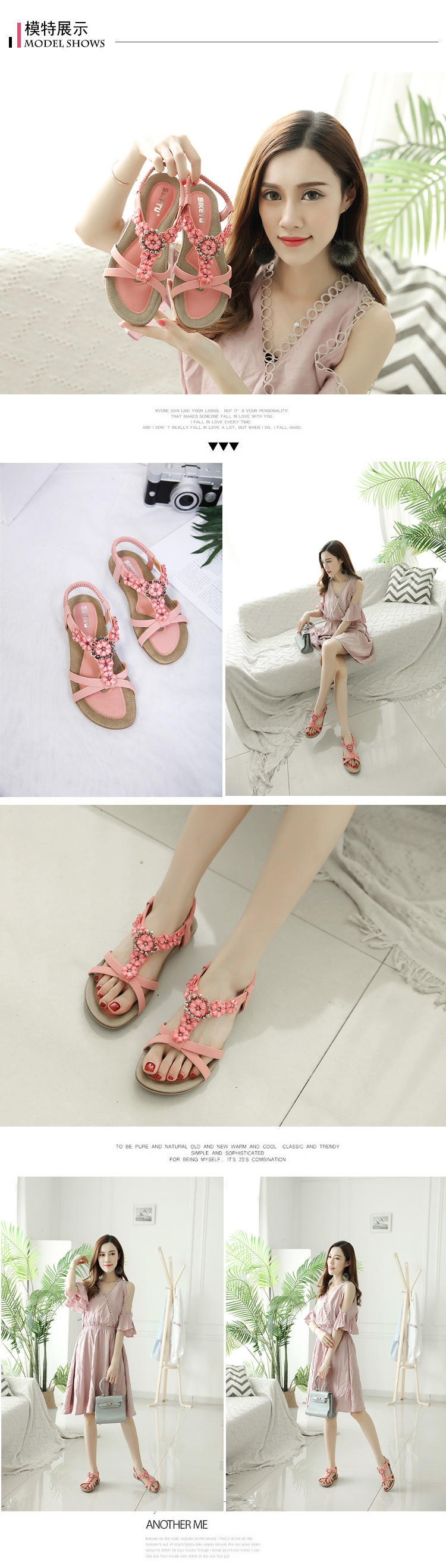 Fashion Summer Women Sandals Flowers Rhinestones Leisure Beach Shoes Big Size 35-45