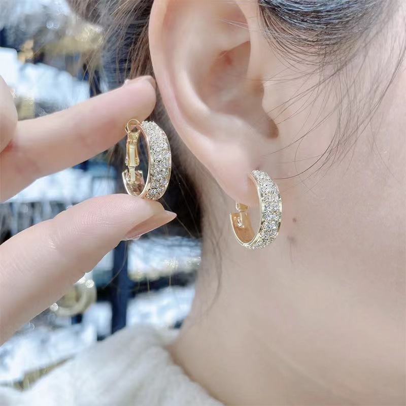 Style:cute , fashion,Gold Plated zircon double C earrings, ear clips