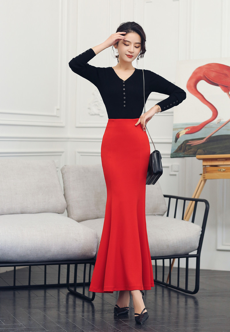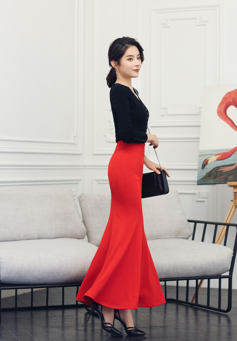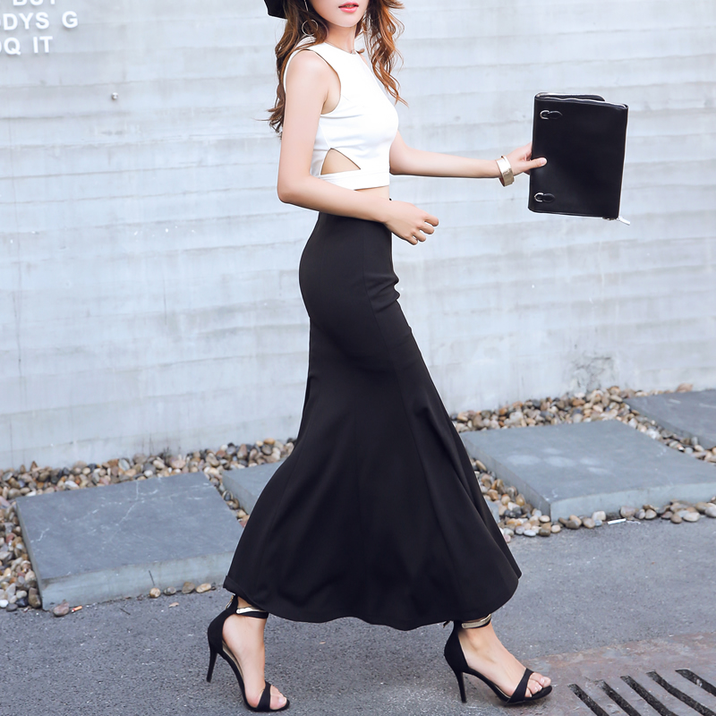 Free Shipping 2022 New Fashion Long Maxi Skirt For Women Plus Size XS-3XL Mermaid Style Stretch Ladies Black And White Skirts