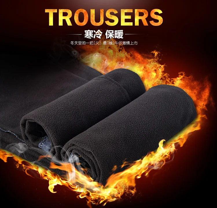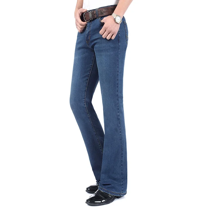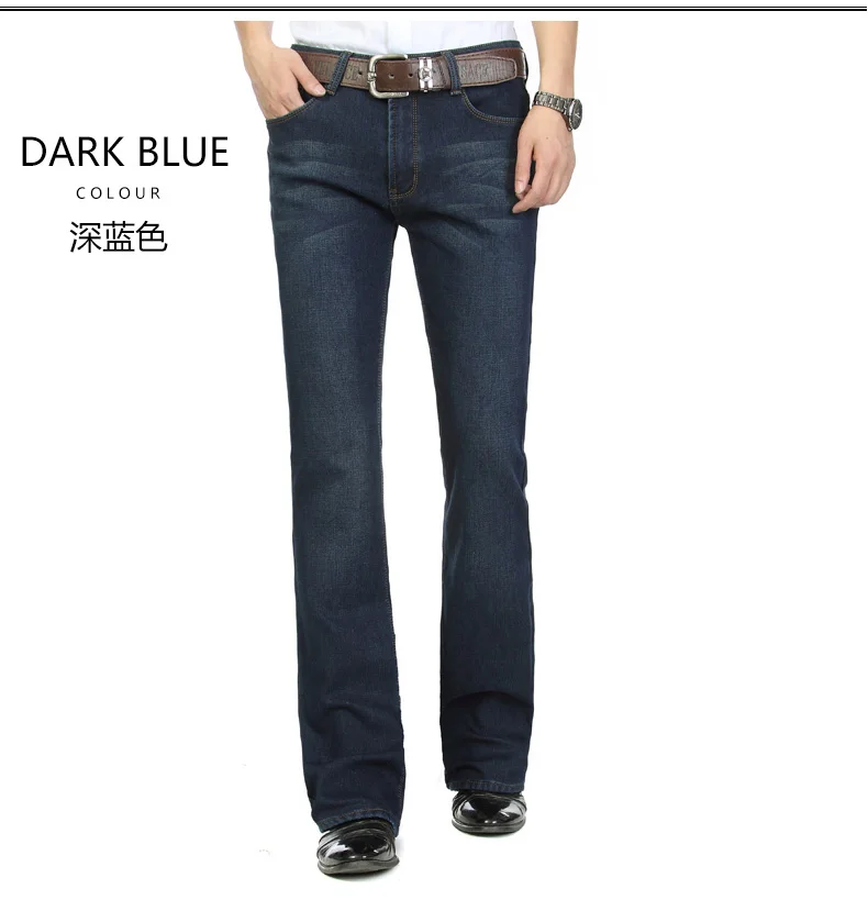 Free Shipping 2023 High Quality Men Winter Worm Fleece Black Blue Boot Cut Jeans Business Casual Flare Pants Mid Waist Trousers