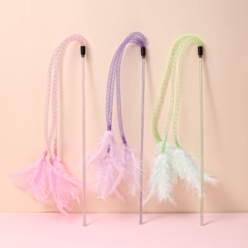 Funny Kitten Cat Teaser Interactive Toy Rod with Feather Toys for Cats Teaser Interactive Toy Rod Pet Cats Toys Stick Supplies