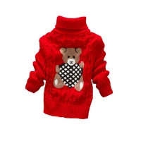 Girls Sweater Cartoon Bear Winter Boy Girl Thick Knitted Bottoming Turtleneck Shirts Solid High Collar Pullover Sweater