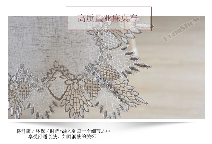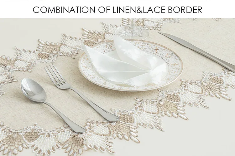 Handmade Simple Modern Primary Color Linen Table Cloth Lace Embroidered Linen Tablecloth Tv Cabinet Dust Cover Home Table Runner