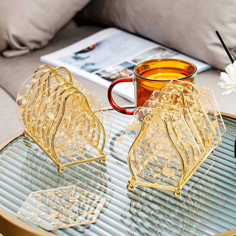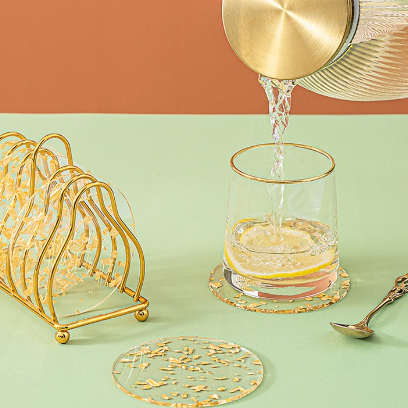 The cup coaster with creative gold foil decor design can decorate your dinner table for adding a touch elegance and luxury.