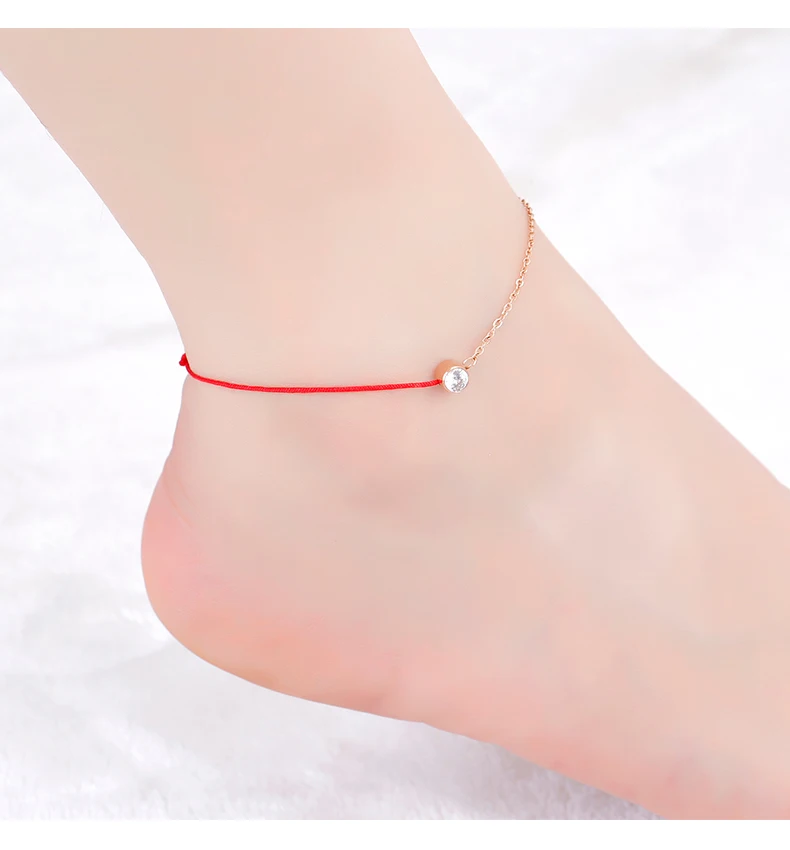 High Quality 18KGP Titanium Steel Red Rope Zircon Anklet Women Fashion 316L Stainless Steel Jewelry (GA116)
