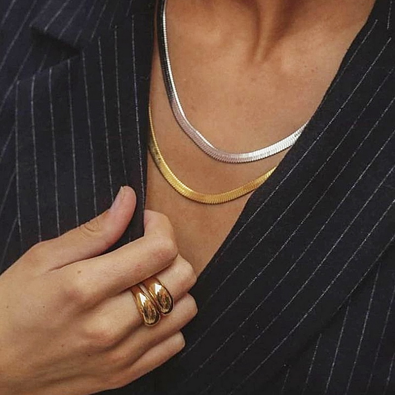 Hot Fashion Unisex Snake Chain Women Necklace Choker Stainless Steel Herringbone Gold Color Chain Necklace For Women Jewelry