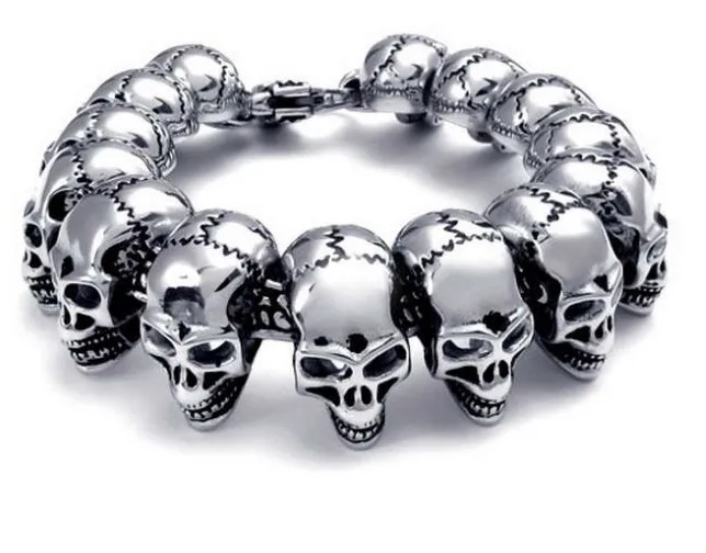 2015 best price Perfect man Fashion Offbeat 316L Stainless Steel Gothic Skull Biker bangle Bracelet 24mm 8.66” 136g For Gifts