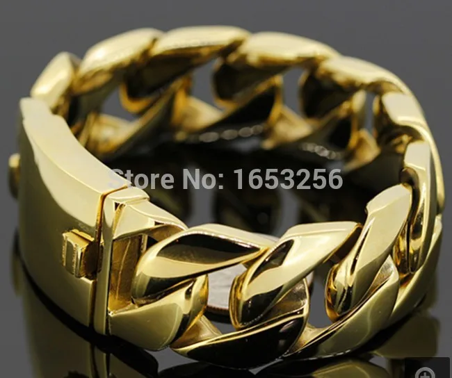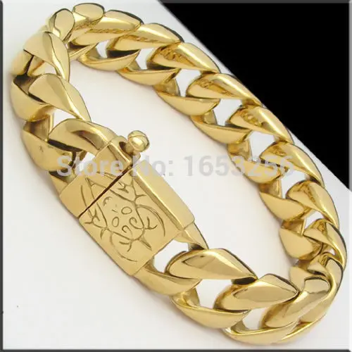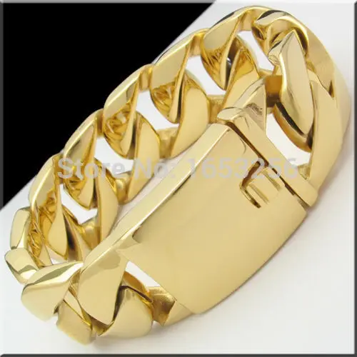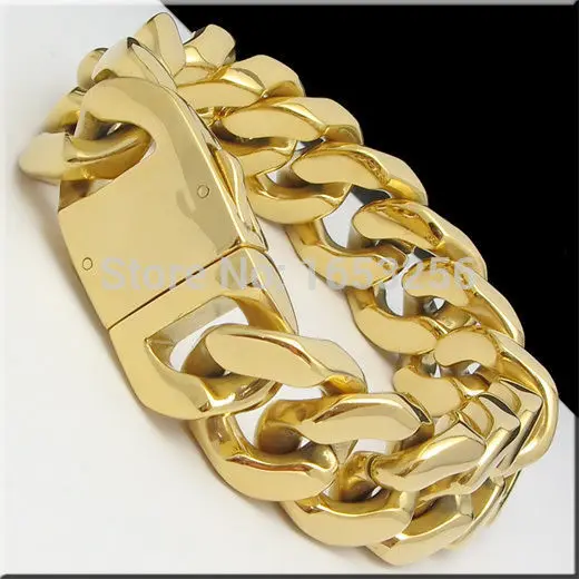 2015 FASHION CLASP COOL HEAVY MEN`S STAINLESS STEEL CUBAN CURB LINK GOLD BRACELET(8.5″x 26mm)