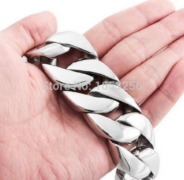 Choose Lenght 8.66’/9.2” High Polished 316L Stainless Steel Cuban Curb Chain Bracelet For Men’s Super Jewelry Heavy 32mm wide