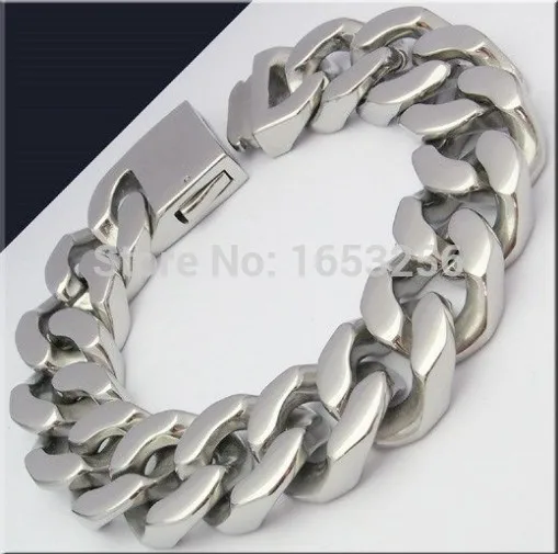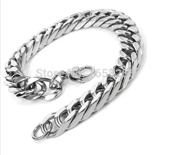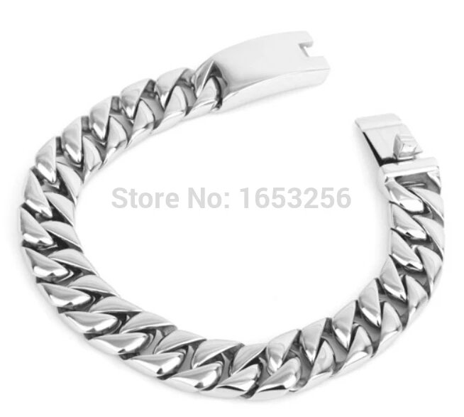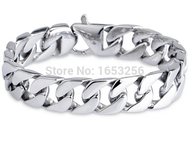 High Grade Mens Silver Stainless Steel Chain ID Bracelet Fashion Steel Jewelry 15mm 8.66”