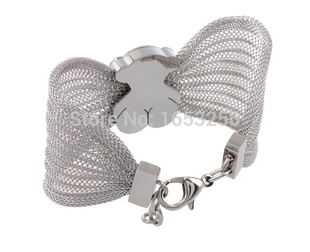 Nice Gifts Jewlery Wide Silver Mesh Stainless Steel Cute Teddy Bear Chars Bangle Bangle Lobster Brand New