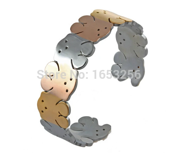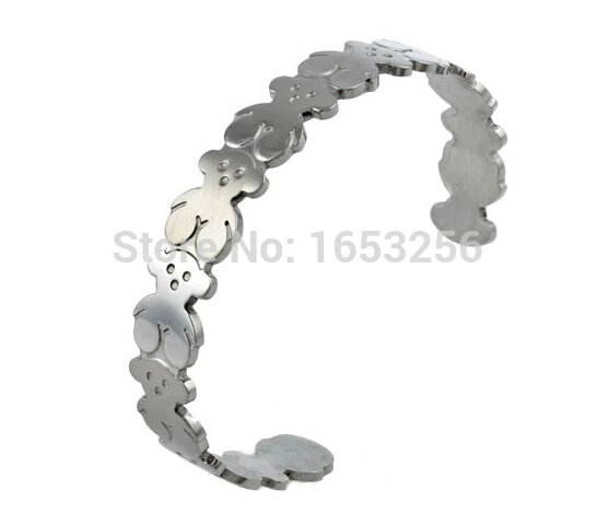 2.5” Fashion Womens Jewelry 316L Stainless Steel Silver Cute Bear Bangle Bracelet Free Shipping gifts