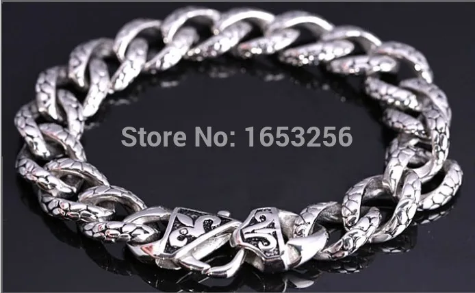 8.66” 13mm Charming Cool Men’s Biker Chain Bracelet Bangle Stainless Steel Silver Flower