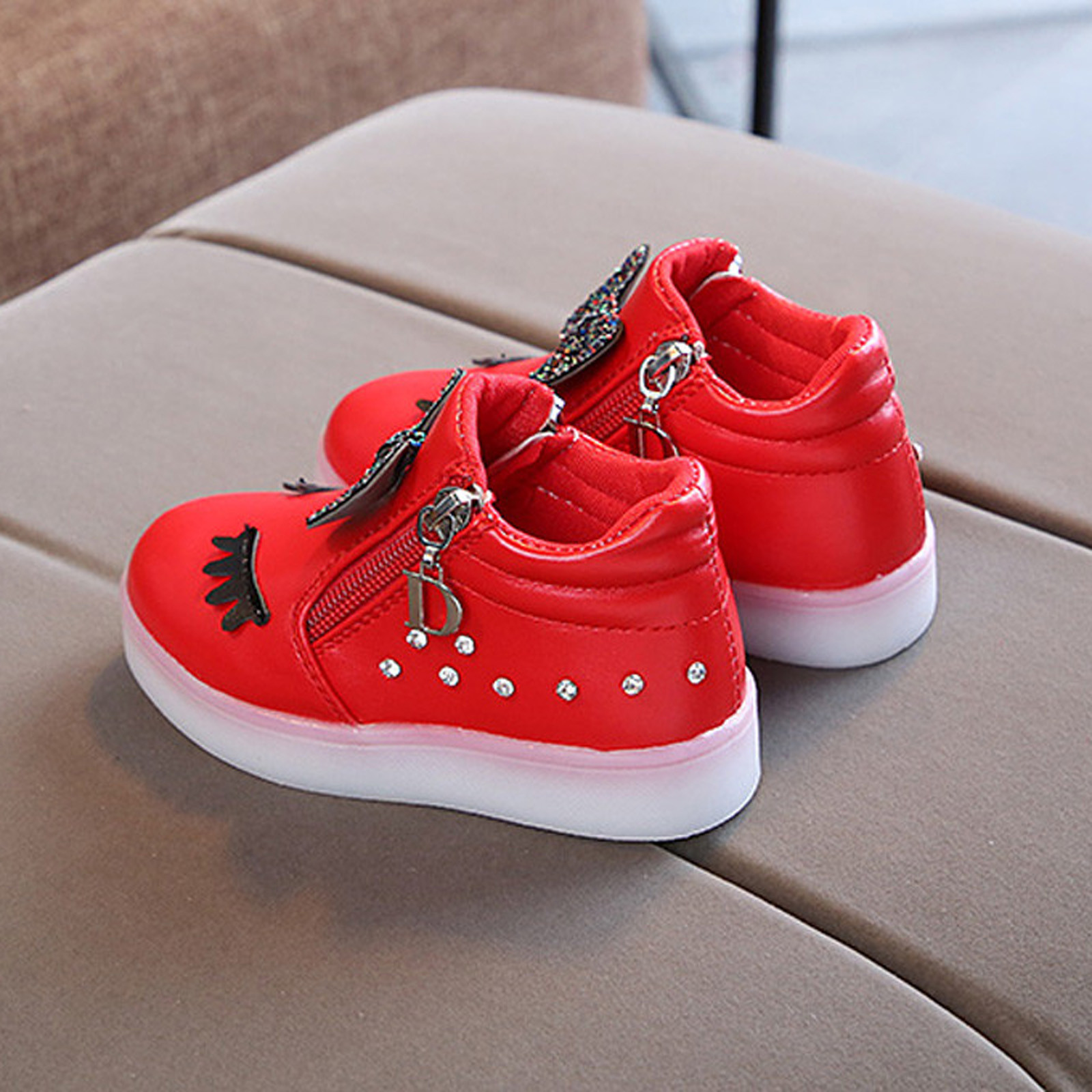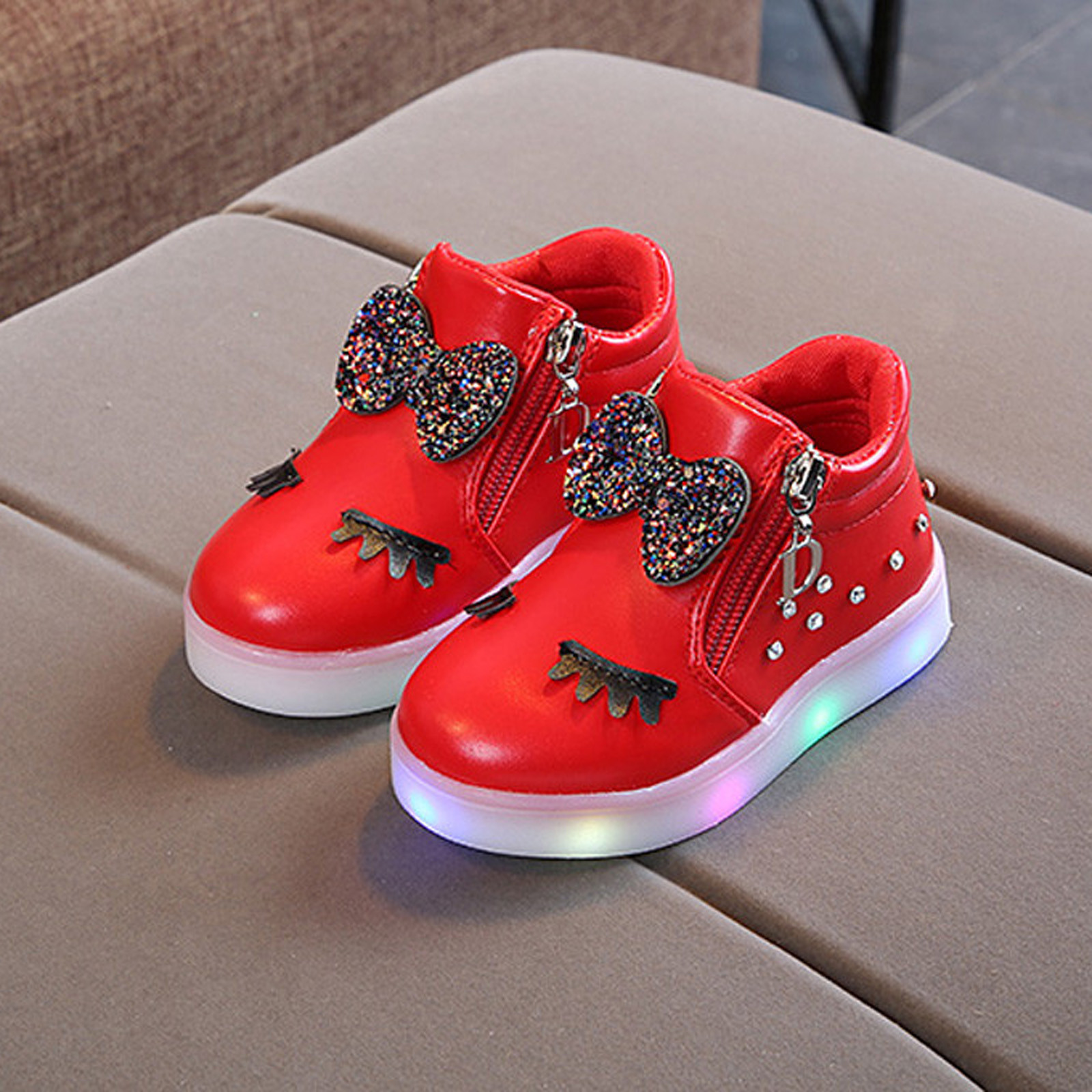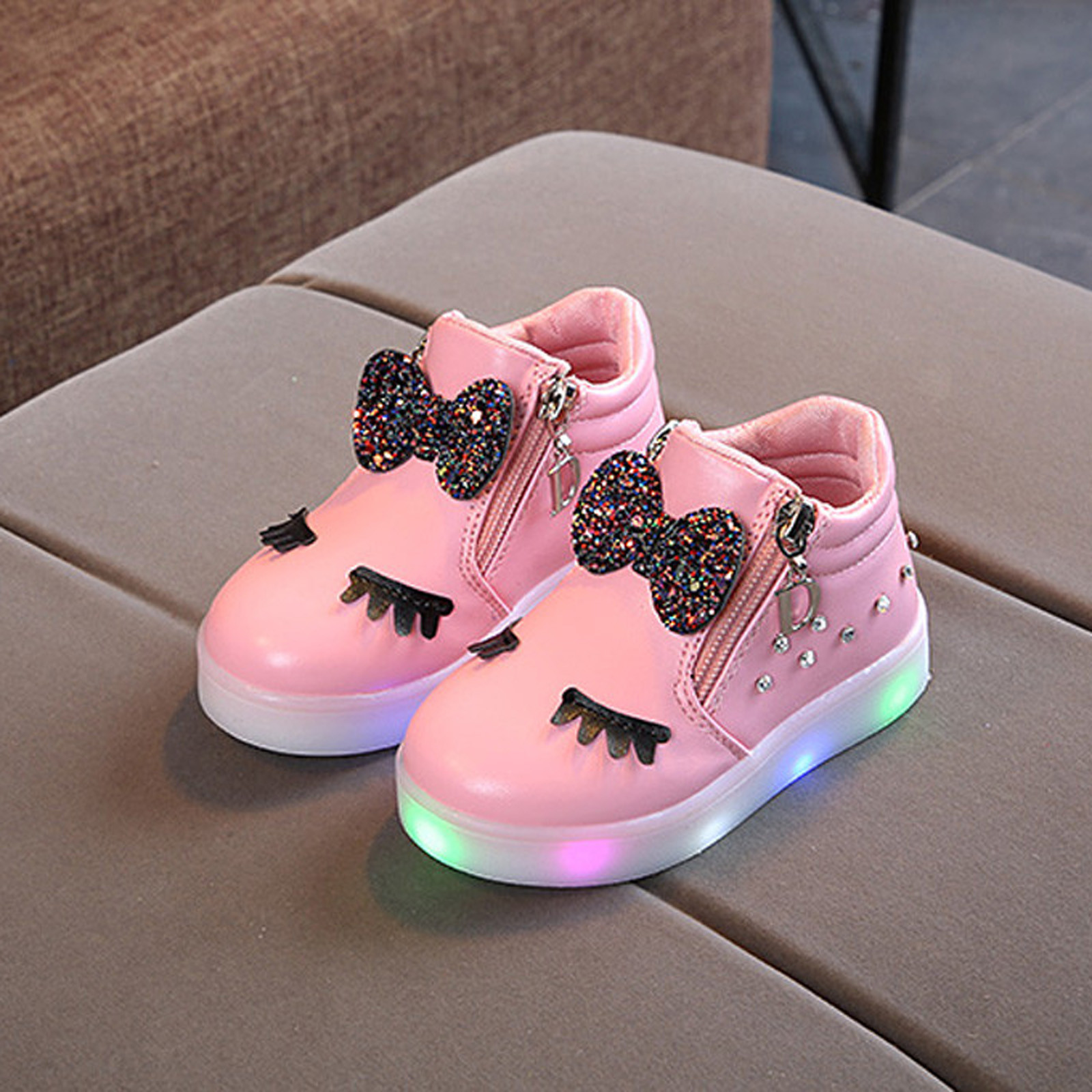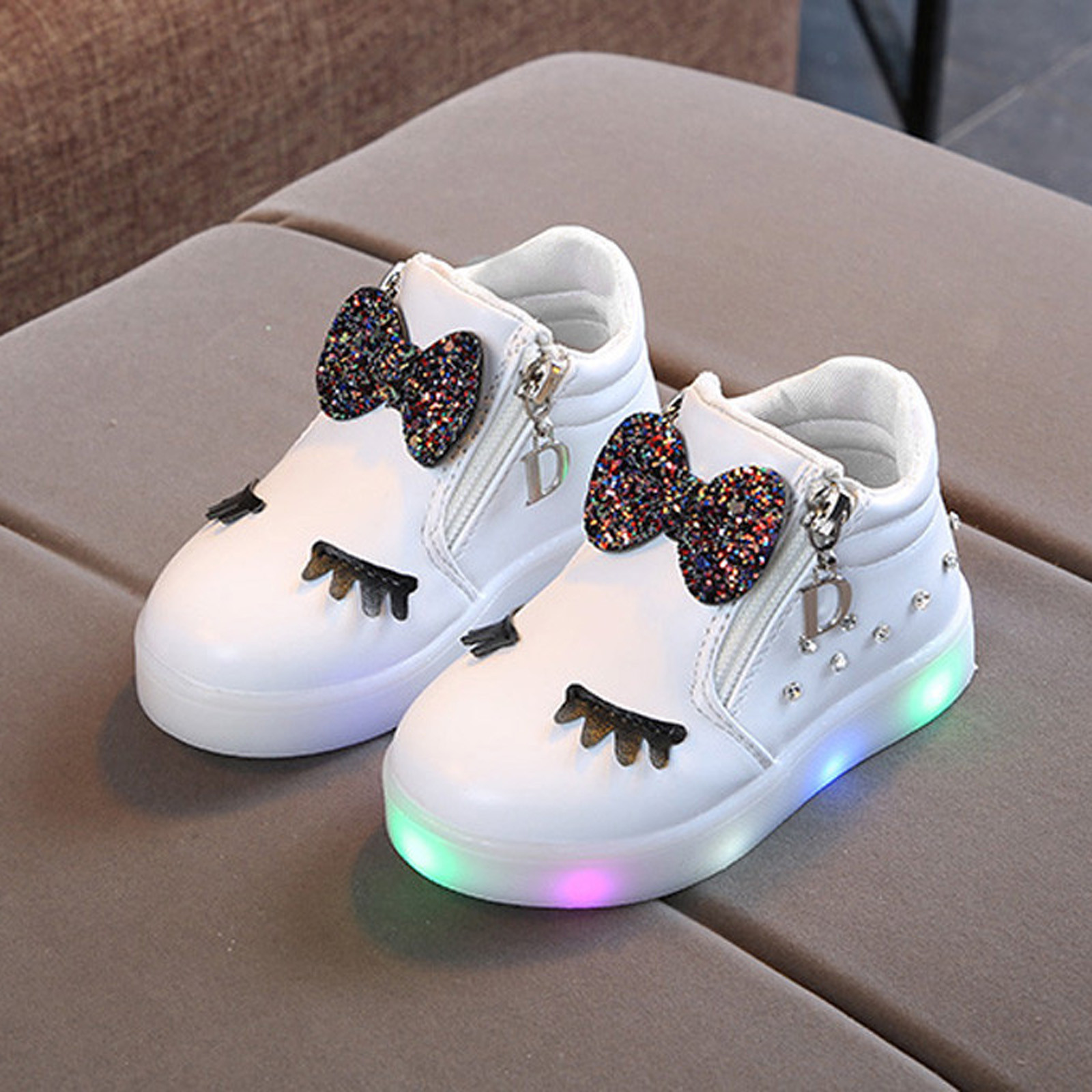 Kids Baby Infant Girls Crystal Bowknot Led Luminous Boots Sport Shoes Sneakers Butterfly Knot Diamond Little White Shoes