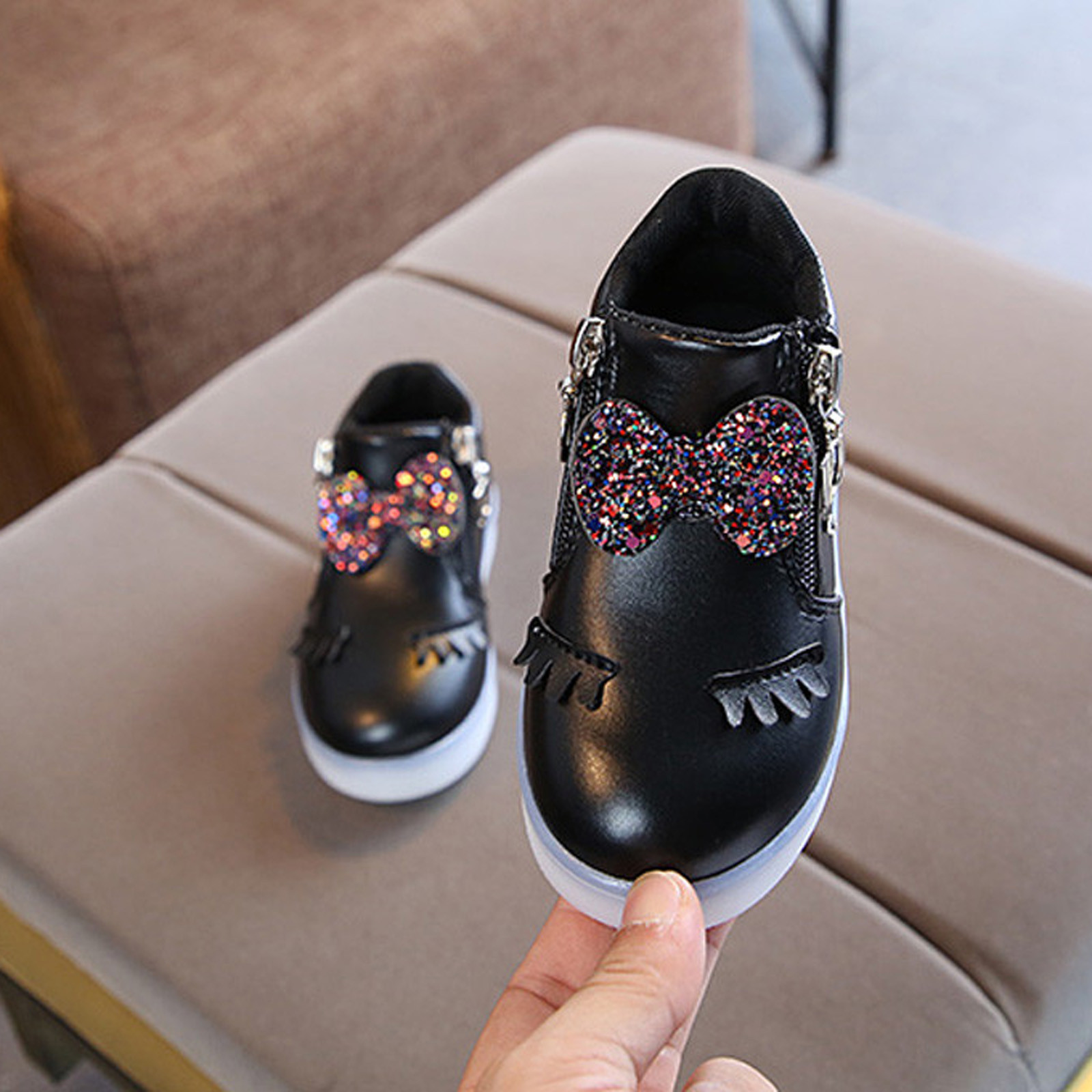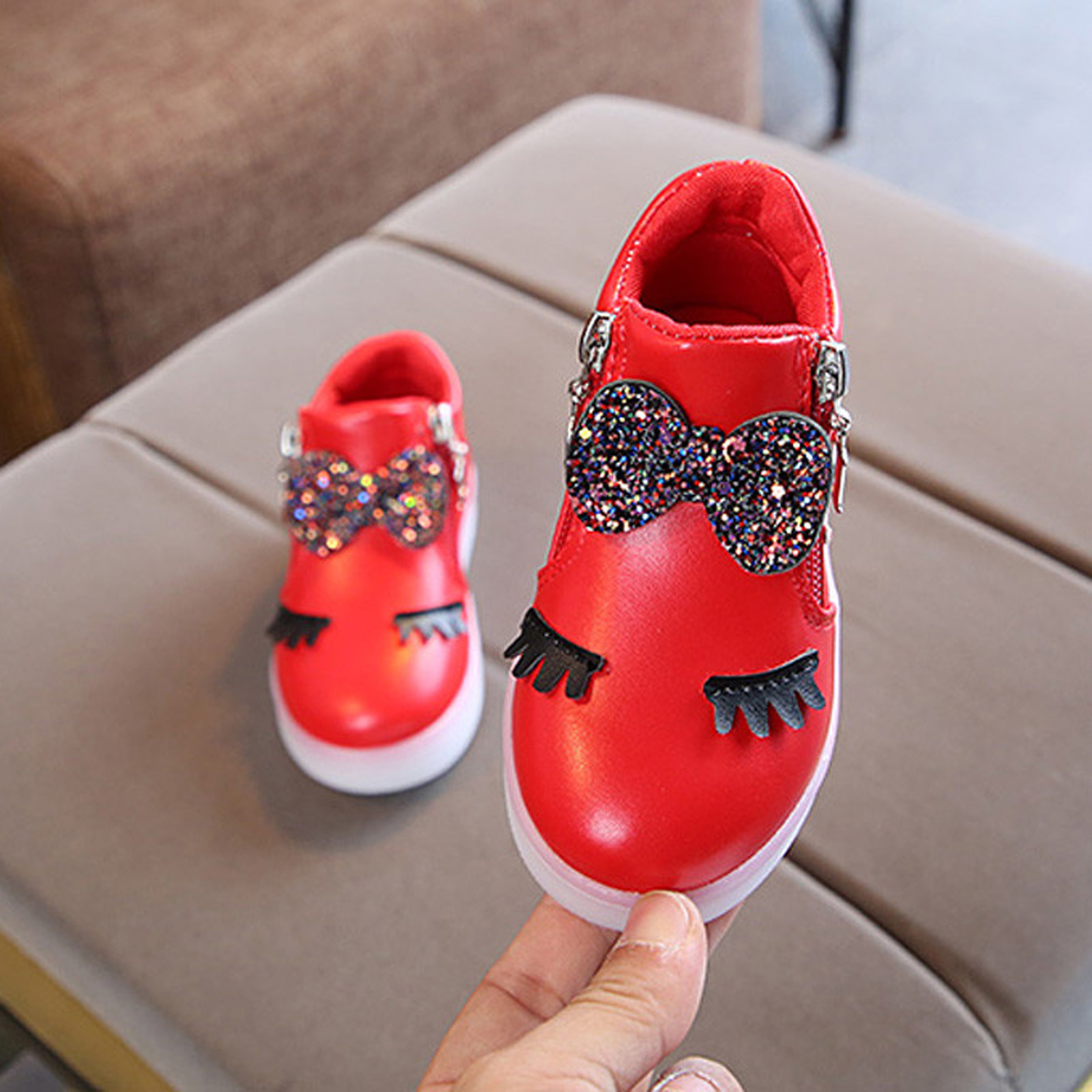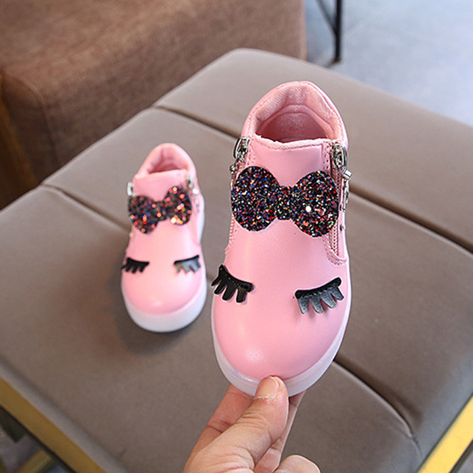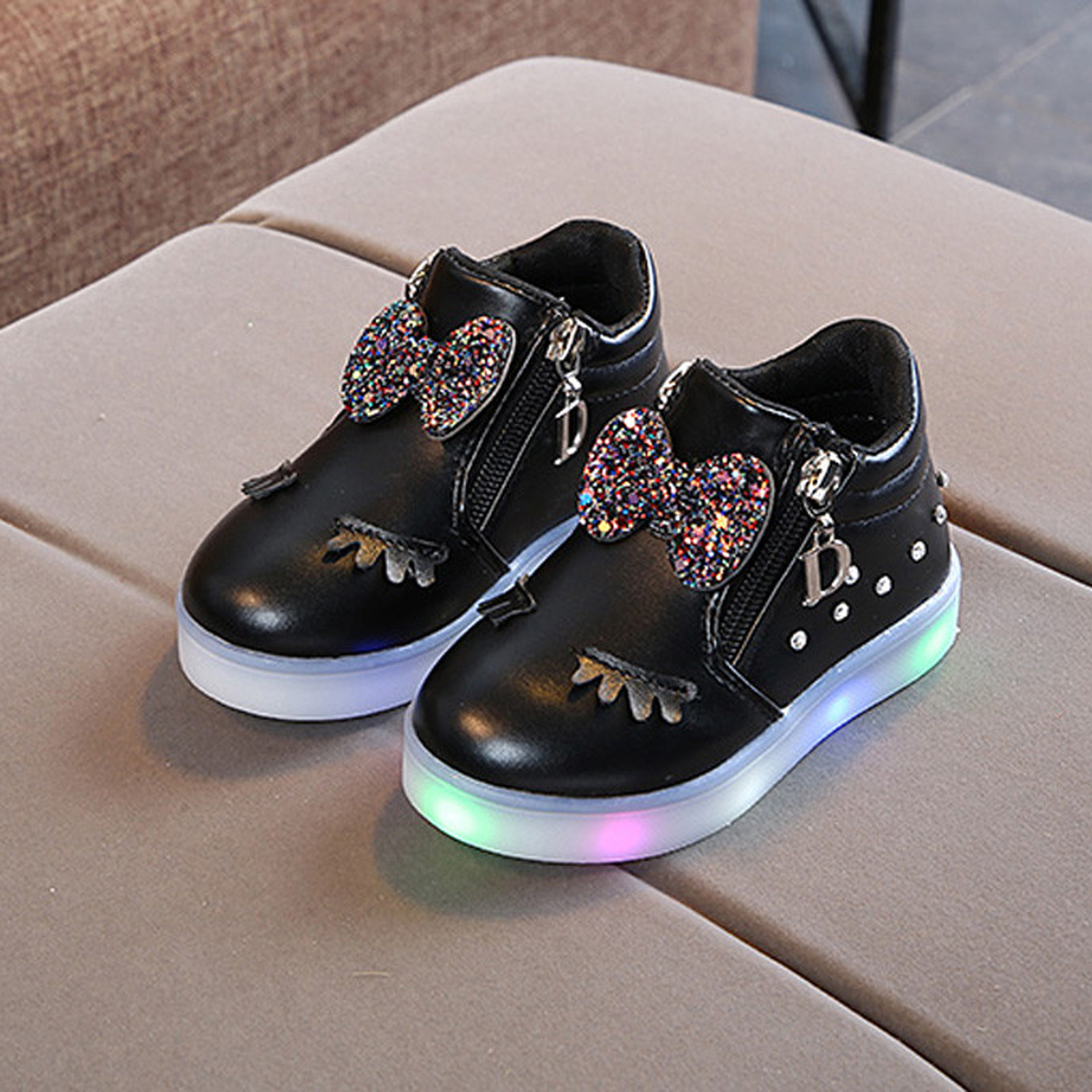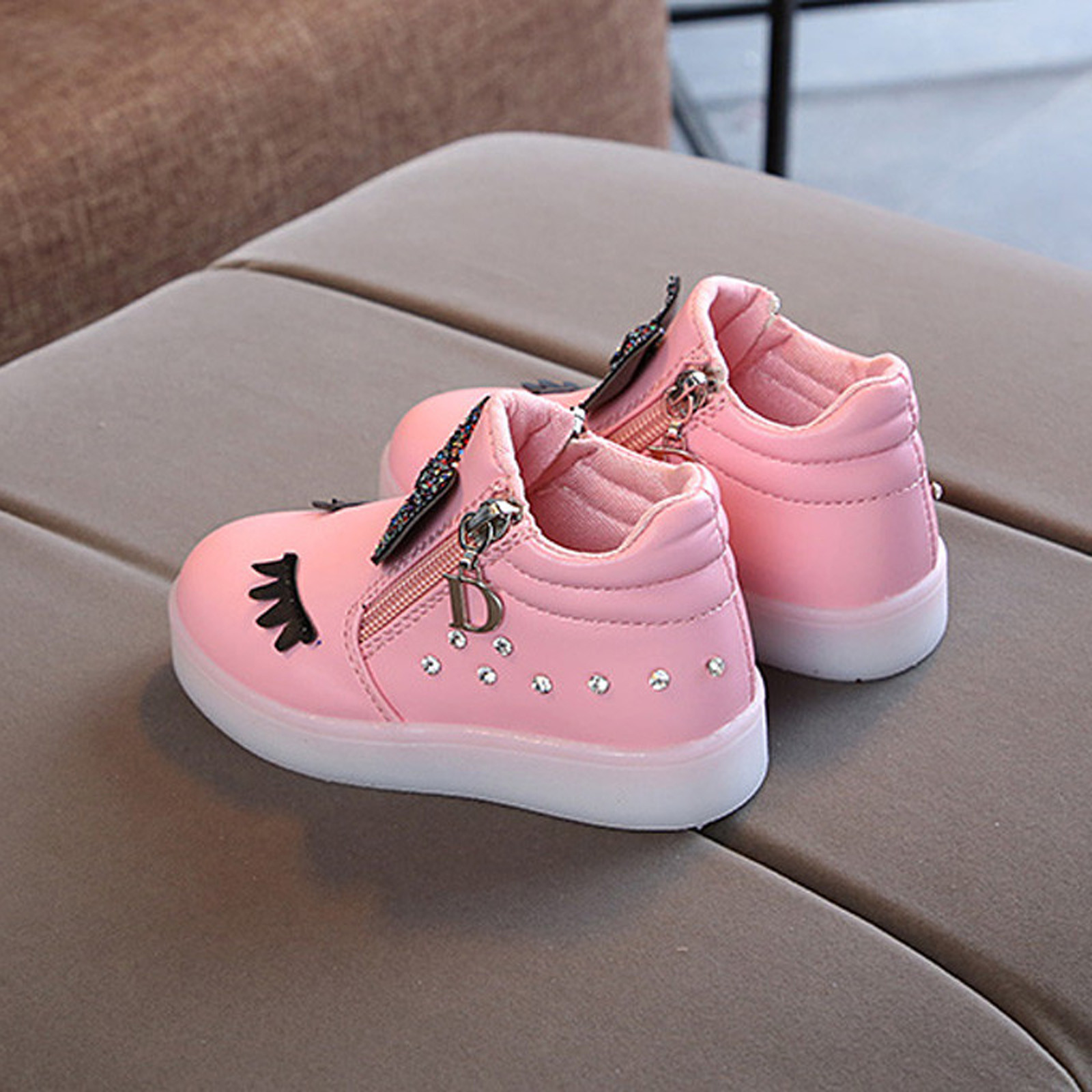 Kids Baby Infant Girls Crystal Bowknot Led Luminous Boots Sport Shoes Sneakers Butterfly Knot Diamond Little White Shoes