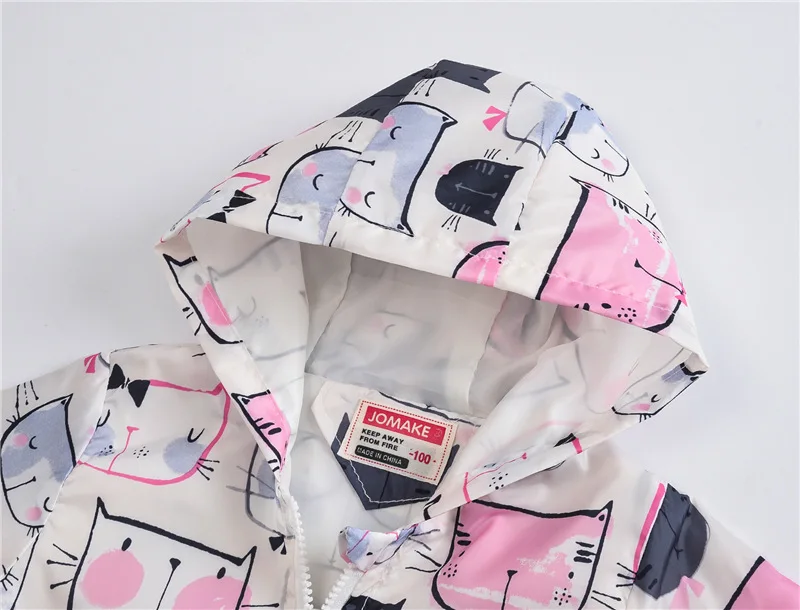 Kids Girls Jacket 2018 Spring and Autumn Flower Cartoon Printed Hooded Coats Kids Clothes for 2-6Y Baby Girl Windbreaker & Coats