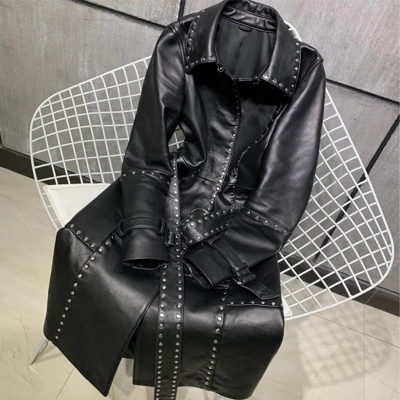 lady genuine leather trench women real sheep leather coat long plus size 5XL