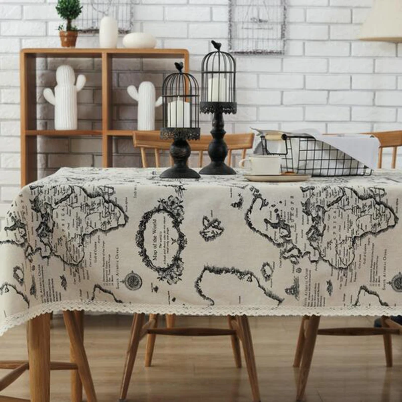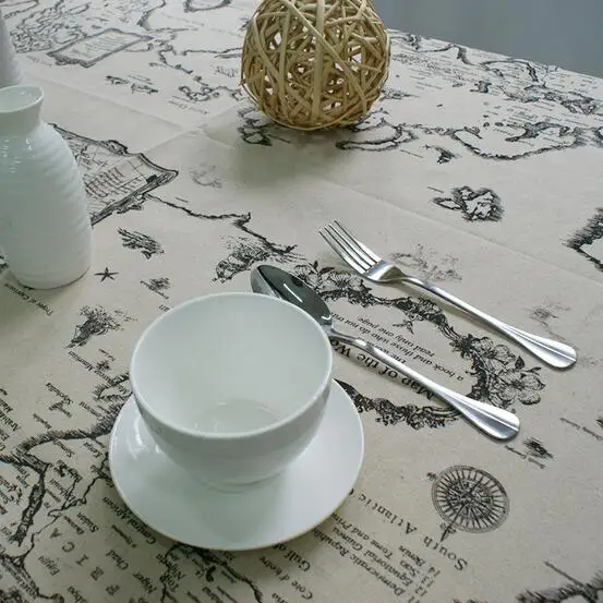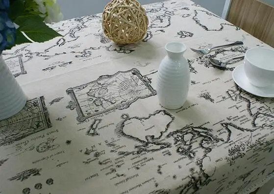 Map Printing Tablecloth European style Linen Cotton decorative Table Cloth for Home Picnic Party Tablecloths
