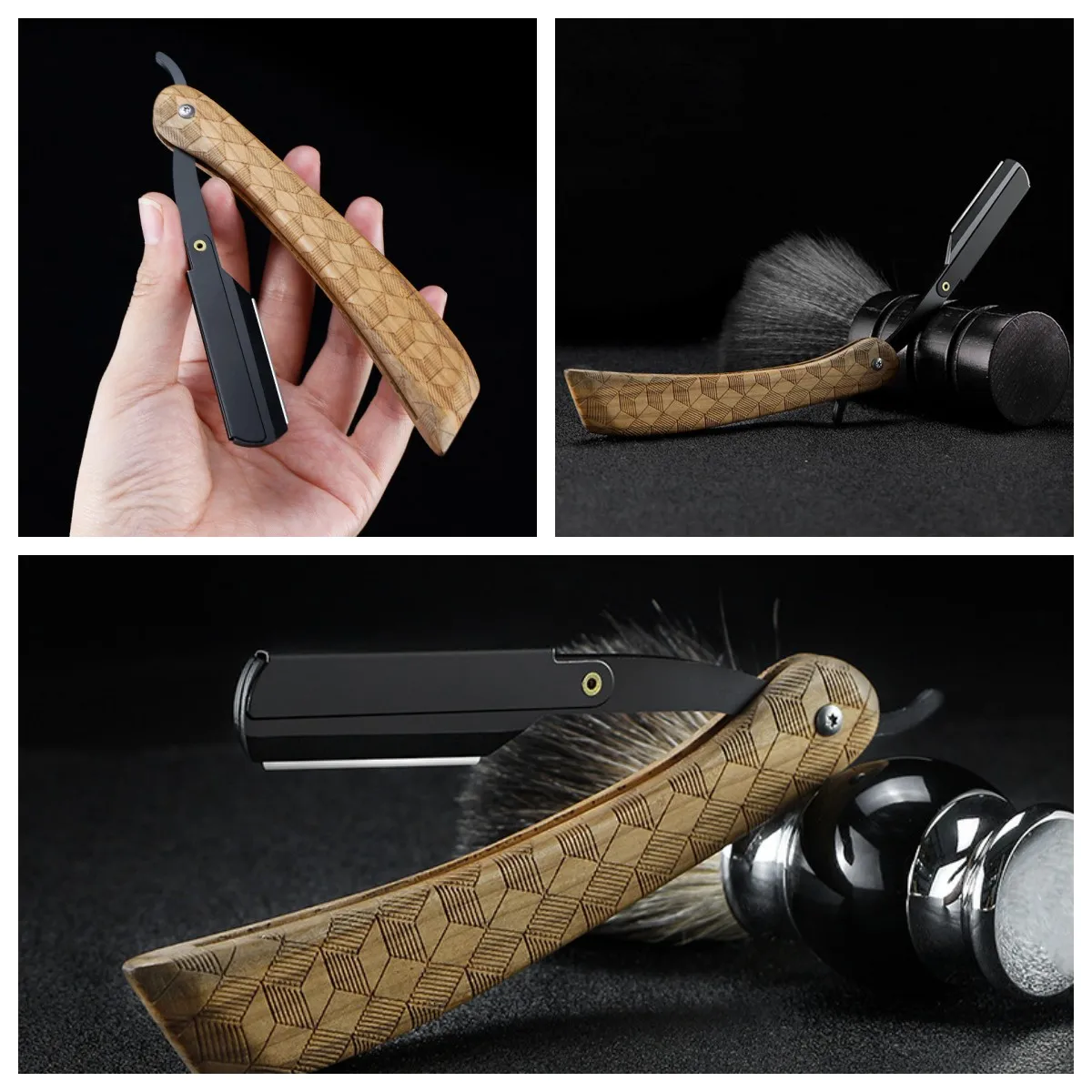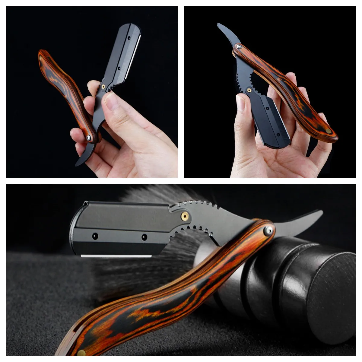 Men Professional Manual Shaver Straight Edge Stainless Steel Barber Razor Folding Shaving Shave Beard Cutter with Blade