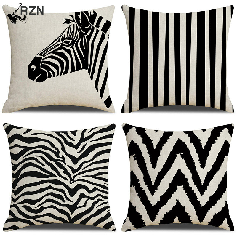 Minimalist Zebra Pattern Cushion Covers for Sofa Linen Material 45x45cm Throw Pillow Case Home Decorative Pillow Covers
