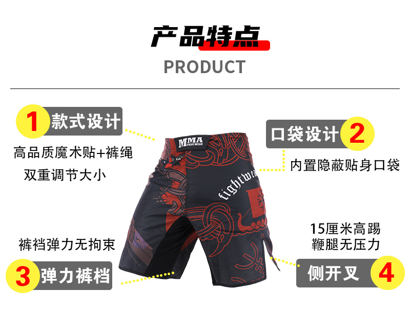 MMA Shorts Fight Sports Fitness Comprehensive Fighting Training Muay Thai Pants Sanda Jiu Shu Running Muscle