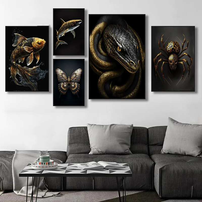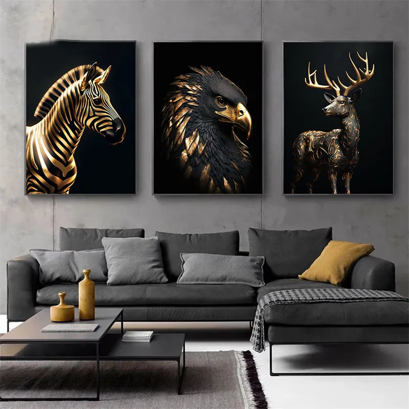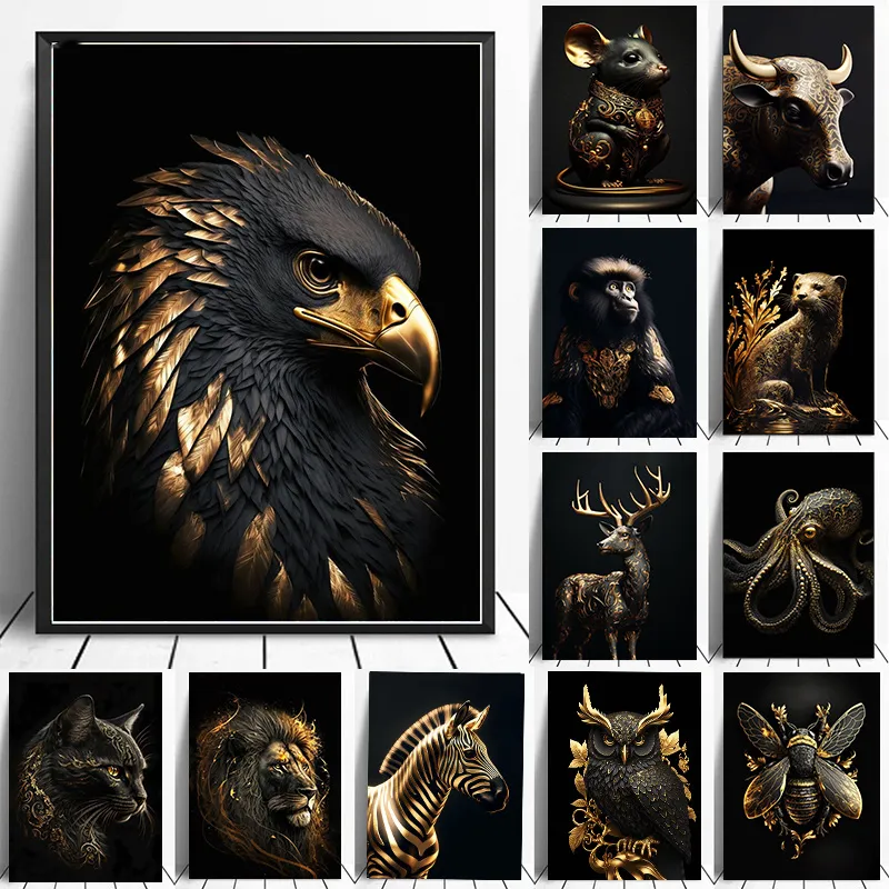 Modern Minimalist Aesthetics Wall Art Black And Gold Animal Eagle Zebra Lion Monkey HD Oil On Canvas Poster Home Decor Gift