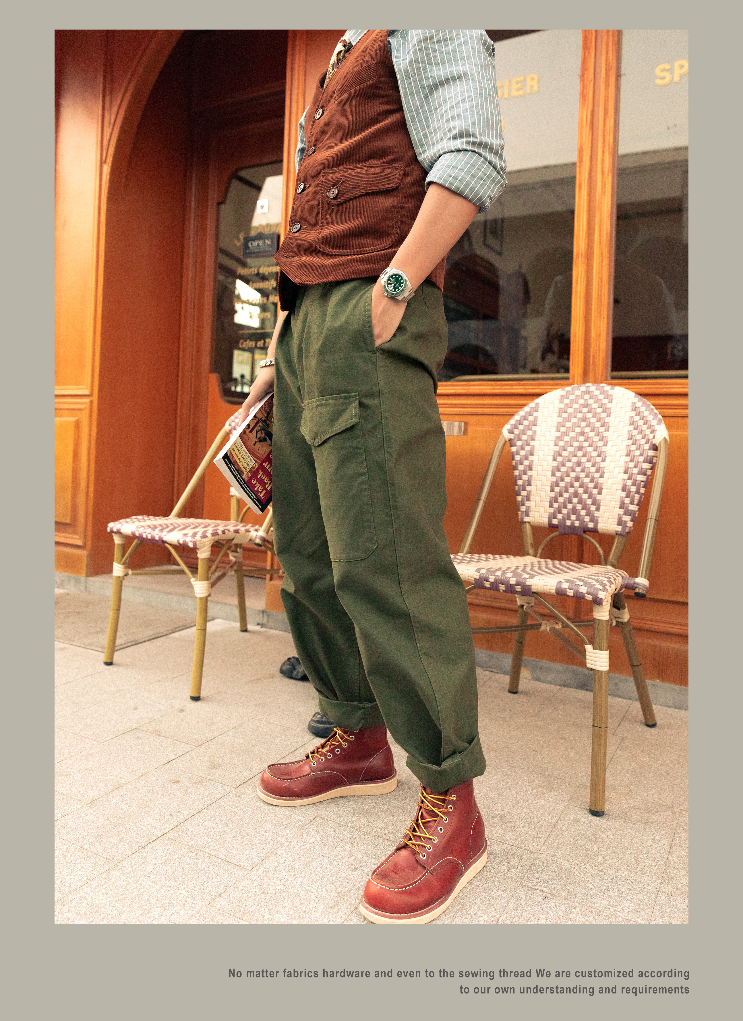 NC-0002 Us Military Style Cargo Pants Mens 10 Oz Cotton Vintage OG107 Loose Casual Trousers