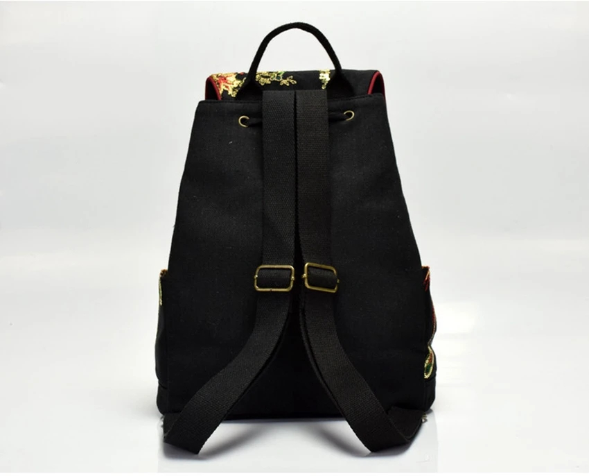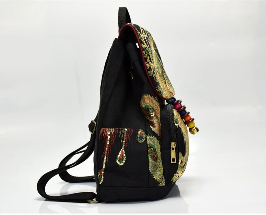 New ethnic wind canvas embroidered backpack shoulder bag peacock embroidery large capacity drawstring bag vacation leisure