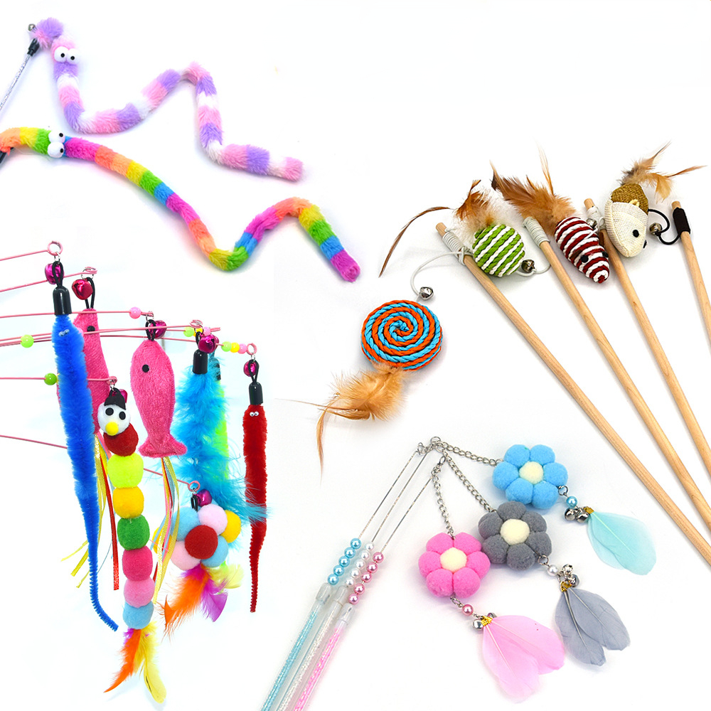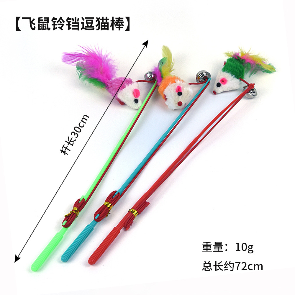 New Squeak Toys Cat Wand Teaser Long Soft Rod Feather with Bell for Small Medium Cat Playing Interactive Pet Accessories