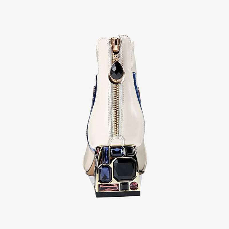 Patchwork Mesh Sandals Boots Women Summer Ankle Boot Luxury Rhinestone Mid Heel Pointed Toe Shoes Ladies Fashion Back Zip Sandal