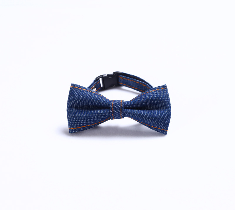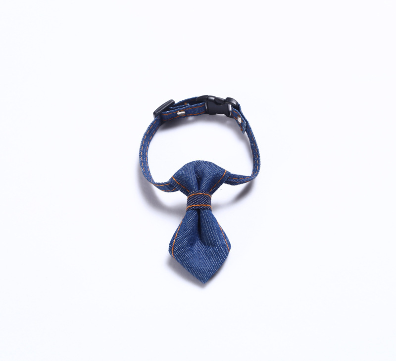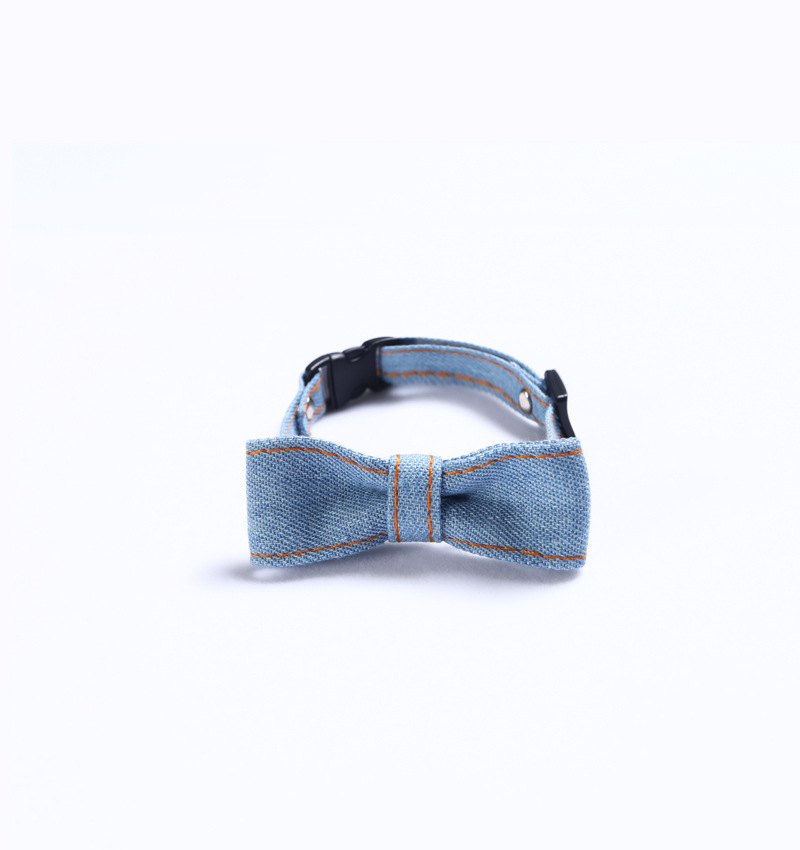 Pet Denim Bow Tie Cat Dog Collar Adjustable Neck Tie Collar Rabbit Bell Bow Tie Denim Bow Pet Accessories for Cat Kitten Dogs