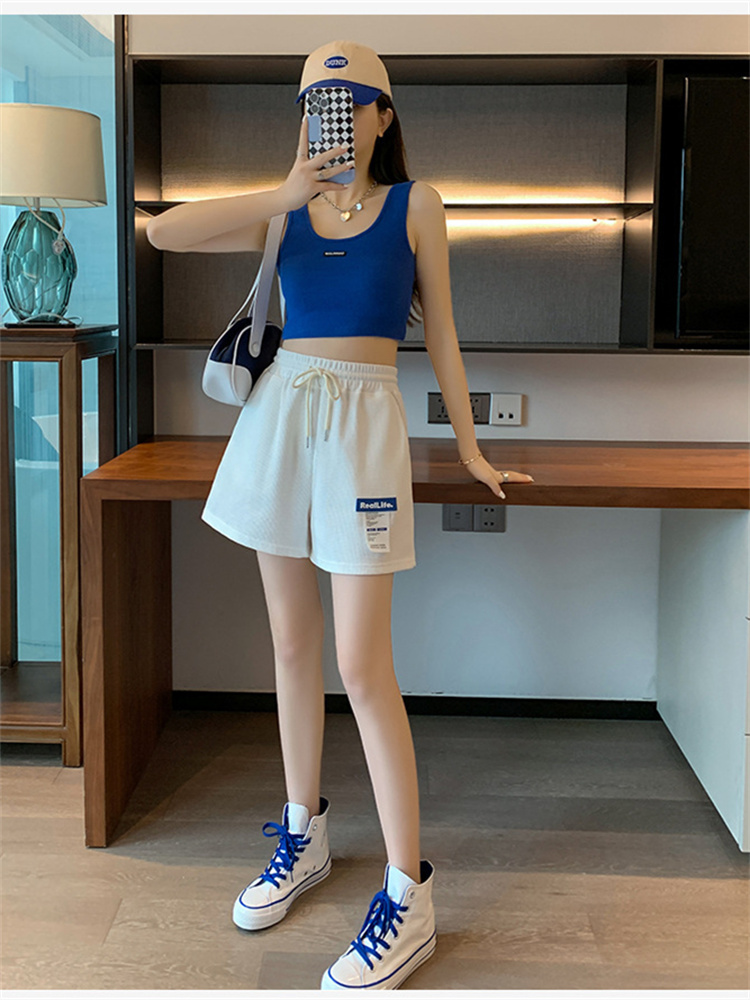 Quick Dry Casual Knee Length Pants For Women Summer Sport Loose Thin Waffle De Mujer Trousers High Waist Pocket Beach Sweatpants