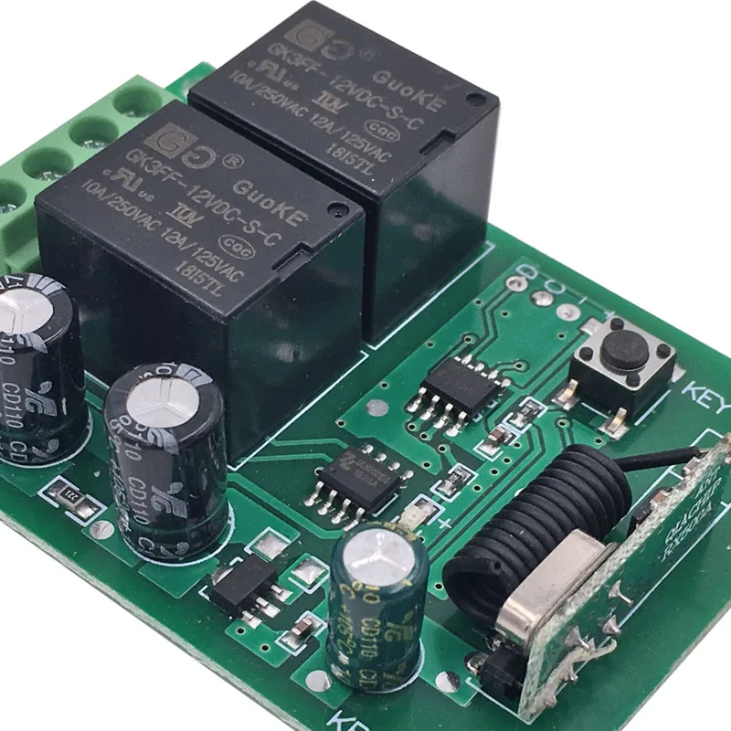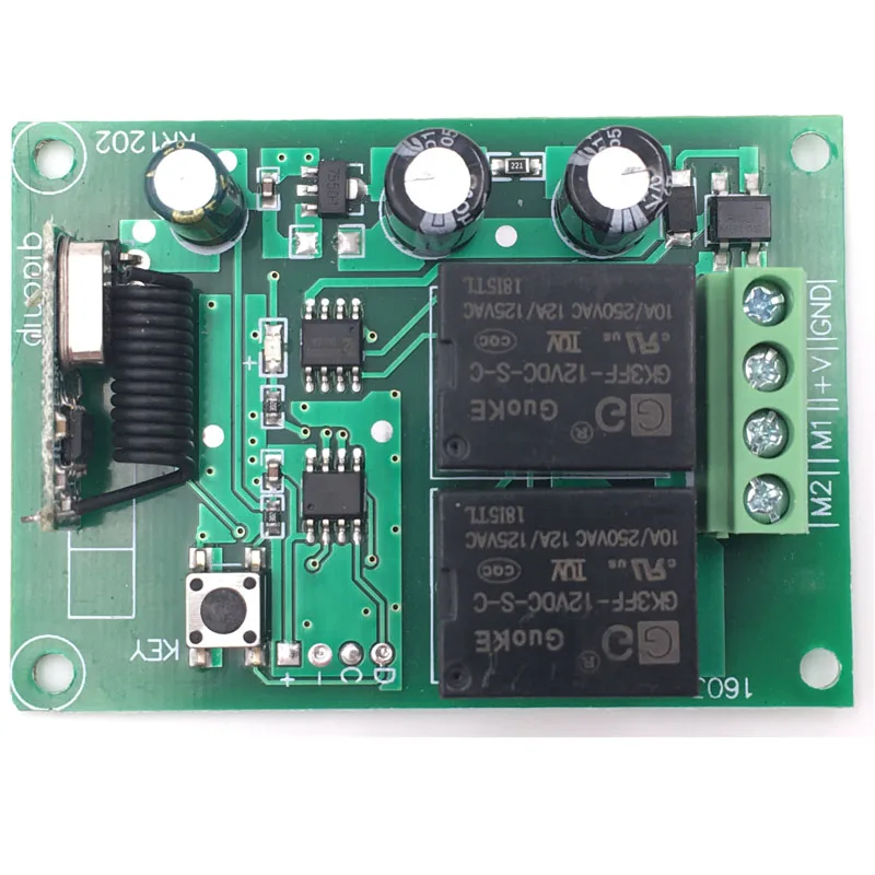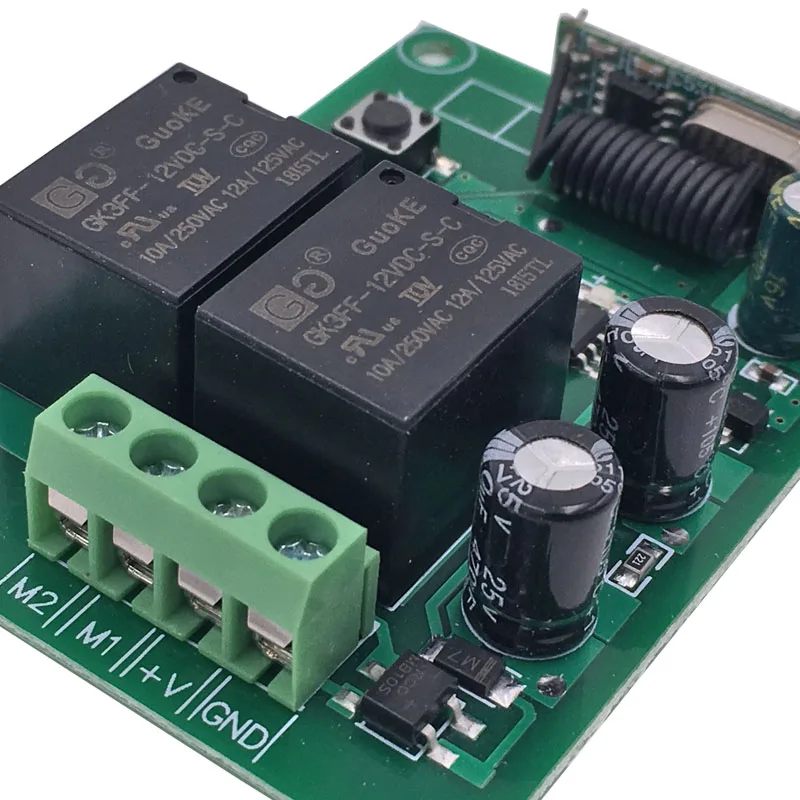 Remote Control 433Mhz DC 12V 2CH rf Relay Receiver and Transmitter for Garage Remote Switch and Change Motor Positive Negative
