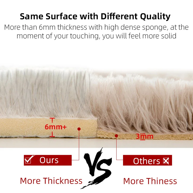 >>>2. Higher Density Faux Fur:Up to 45+mm long pile, 450 GSM High-density shag carpet surface, the Yinzam fluffy area rug is incredibly plush and furry. Hardly sheds carpet fibers! This fuzzy area rug provides a rest space for your family to release their body and mind after a busy day. Perfect to decor your rooms.
