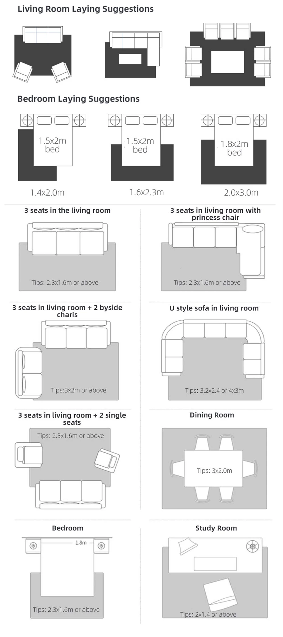 Tips: the carpet has the function of extending the space visually. lt is generally recommended to select the size