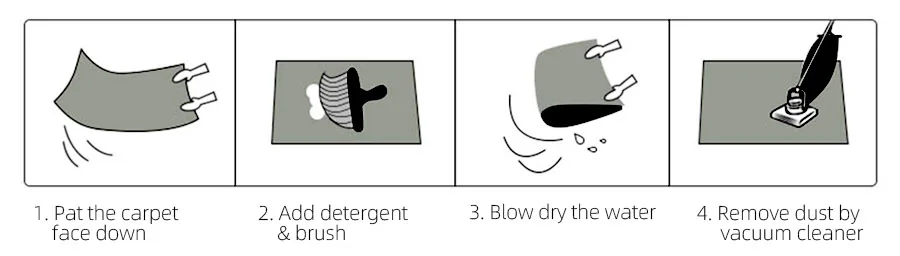 You can clean the carpet by vacuum robot, hand wash, and machine wash, but we are strong advice that clean the carpet by vacuum robot, NO MACHINE WASH. NO bleach.