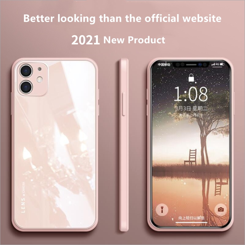 Soft Silicone Frame Case For iPhone 15 14 13 12 Mini 11 Pro XS Max XR X 8 7 Plus SE 2022 2020 Tempered Glass Back Cover