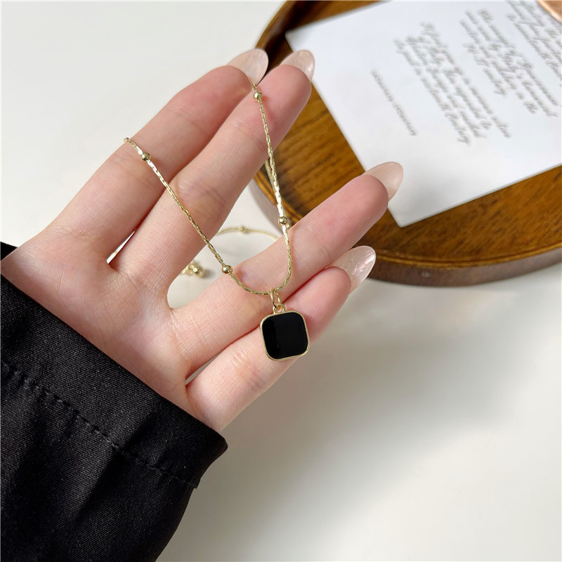 Stainless Steel Necklaces Black Exquisite Minimalist Square Pendant Choker Chains Fashion Necklace For Women Jewelry Party Gifts