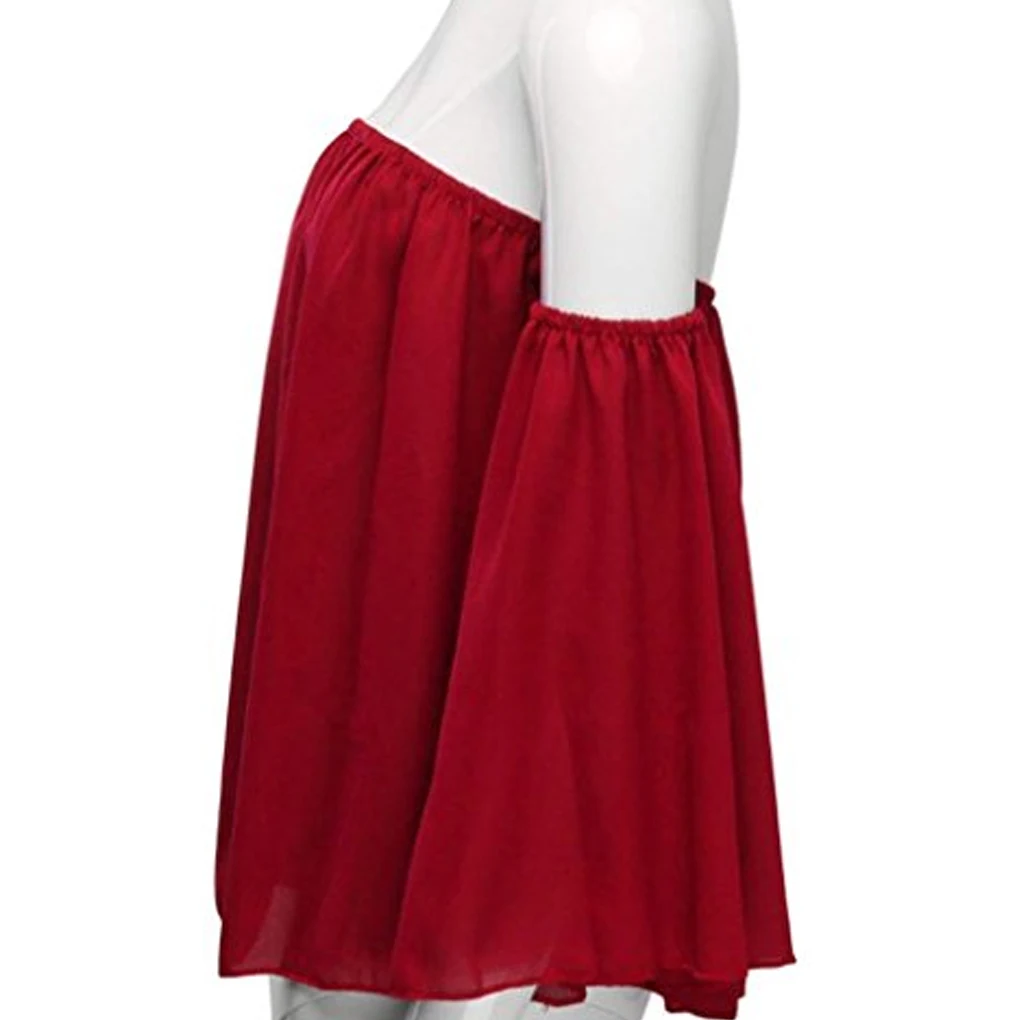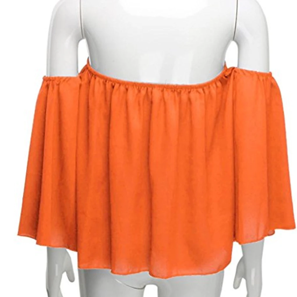 Stylish Women Off Shoulder Blouse Shirt Short Sleeve Casual Tops Strapless Pure Color Bell Puff Sleeve Tops Cotton