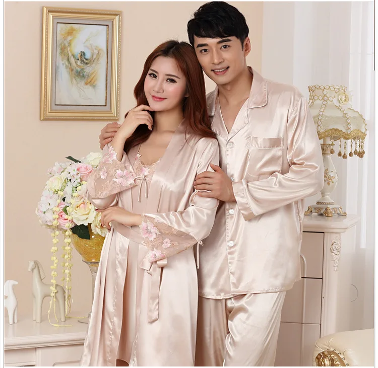 Summer New Rayon Lovers Pajamas Set Plus Size 3XL Long Sleeve Nightwear 2 PCS Shirt&Pant Couple Home Wear Casual Sleepwear 3XL